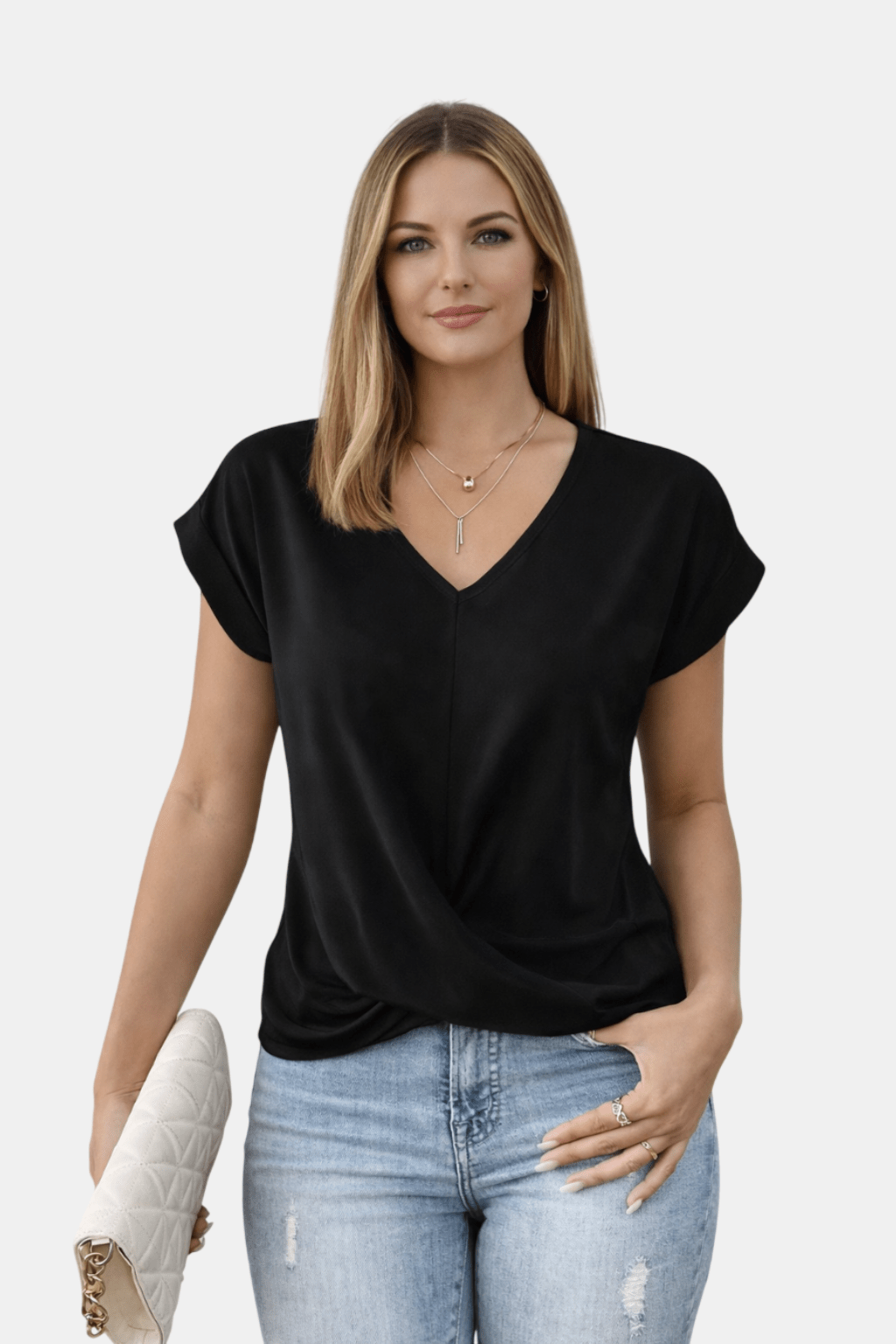 Casualowa Wiosenna Bluzka z Krótkim Rękawem i Dekoltem V (Damska)