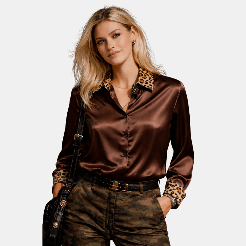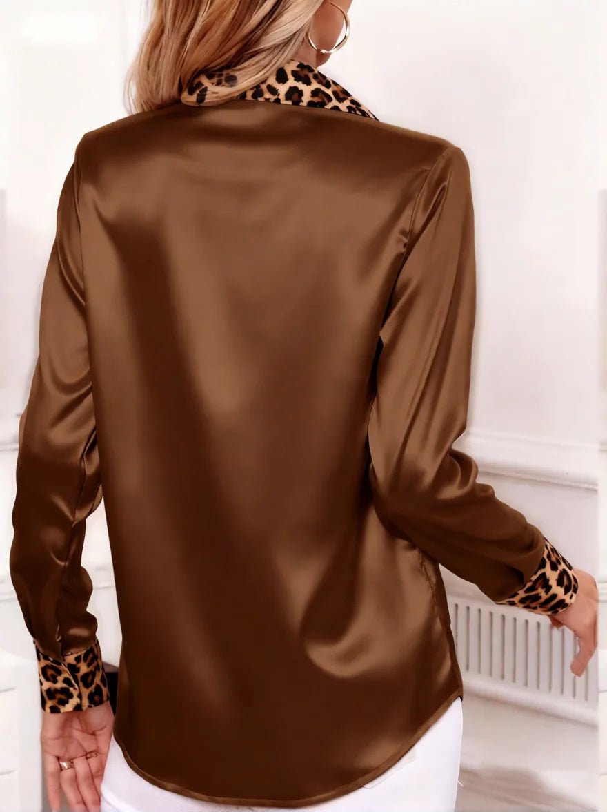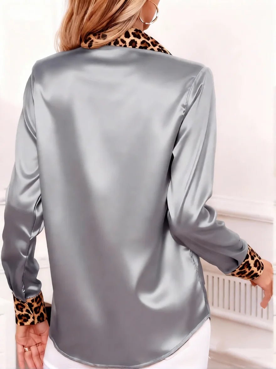 Damska Letnia Satynowa Bluzka z Kołnierzykiem w Panterkę