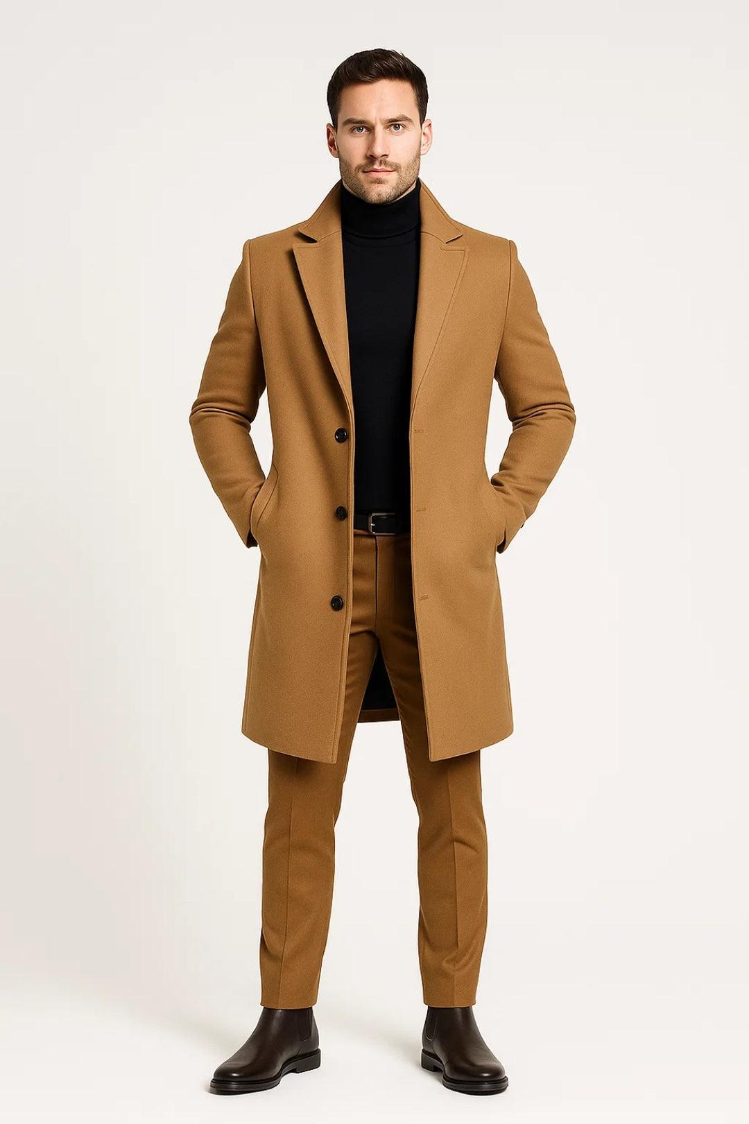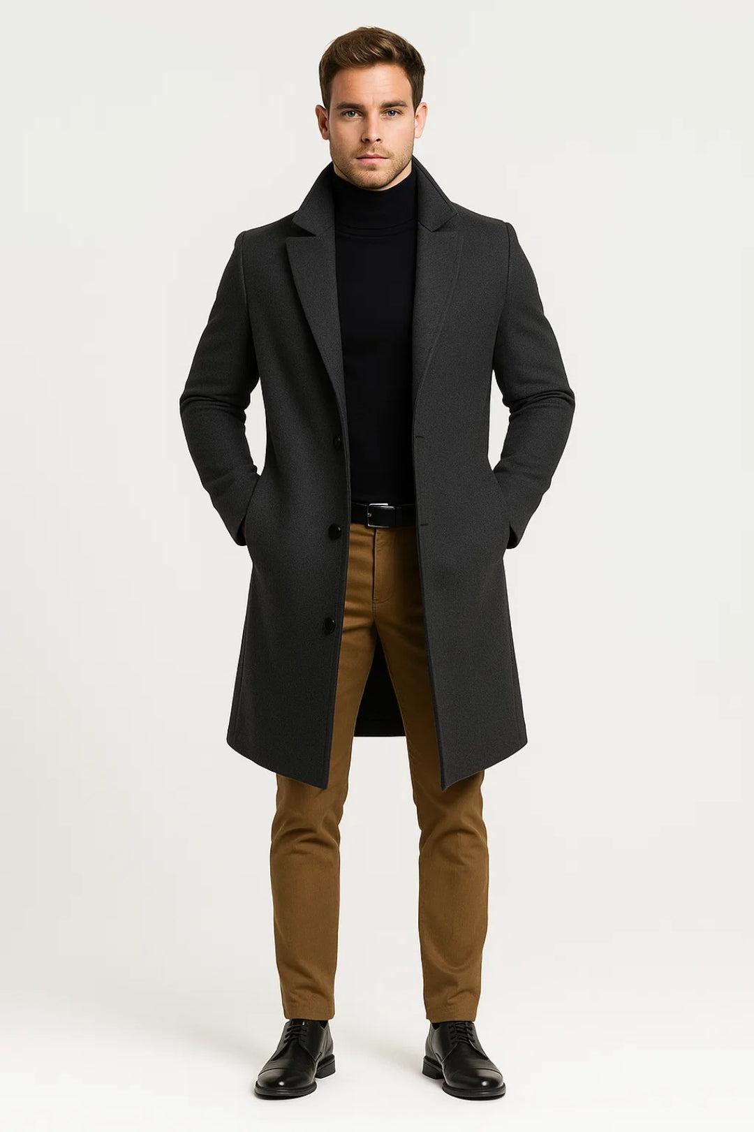 Długi Klasyczny Płaszcz z Kołnierzem (Męski)