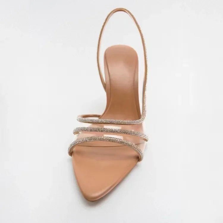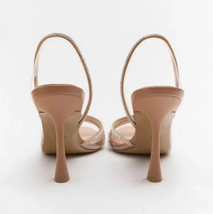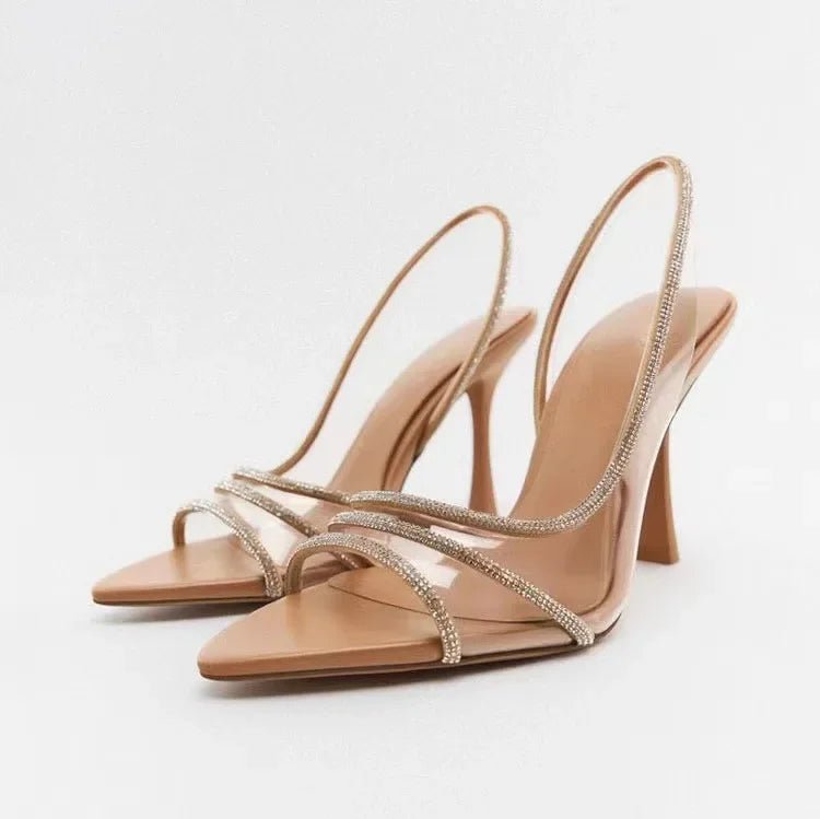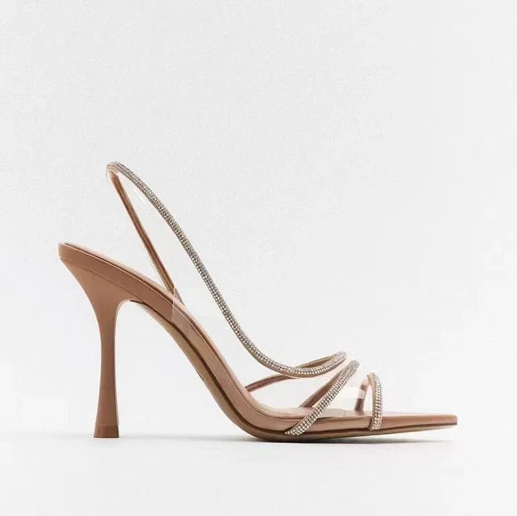 Eleganckie Sandały na Obcasie z Kryształowymi Paskami na Wiosnę (Damskie)