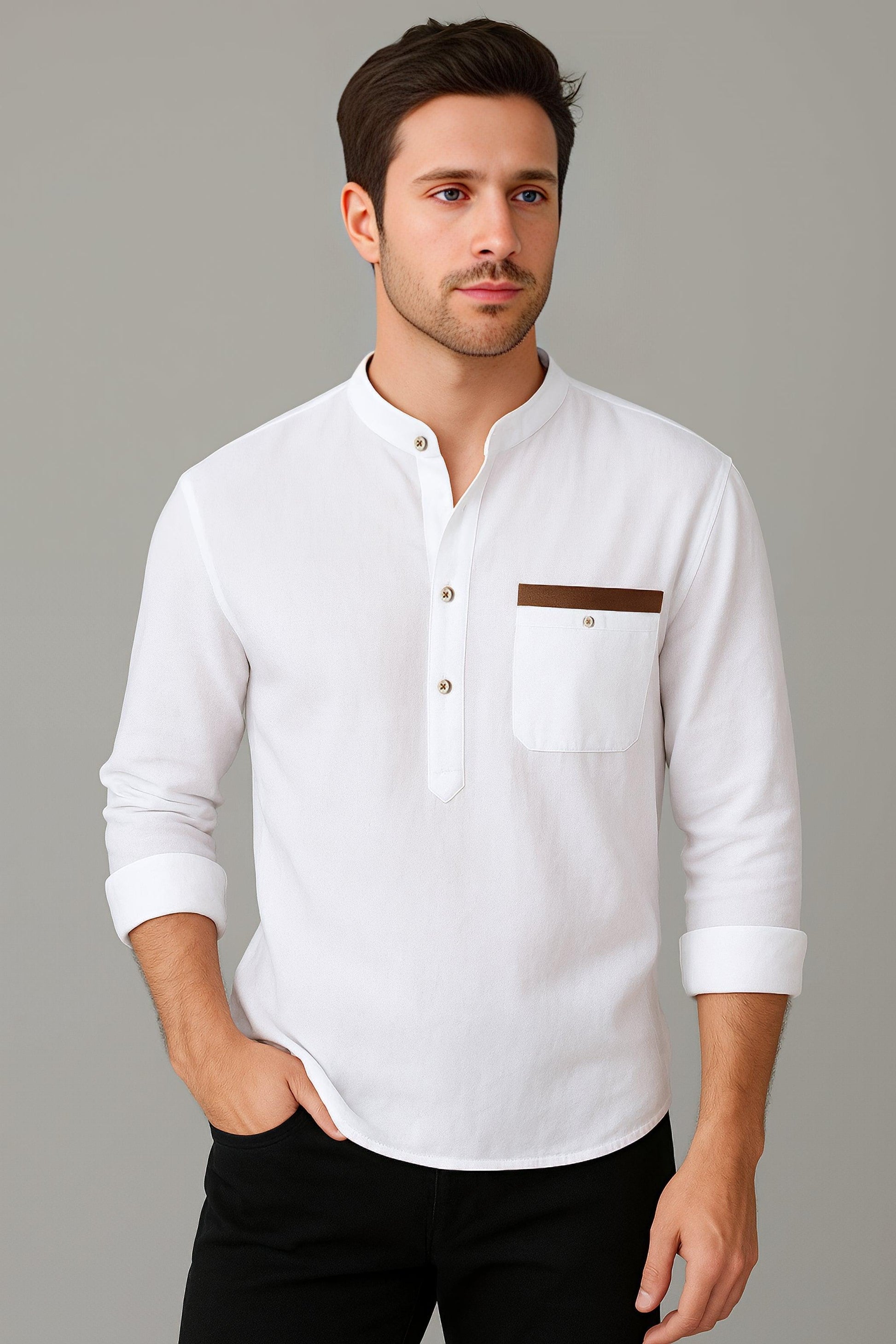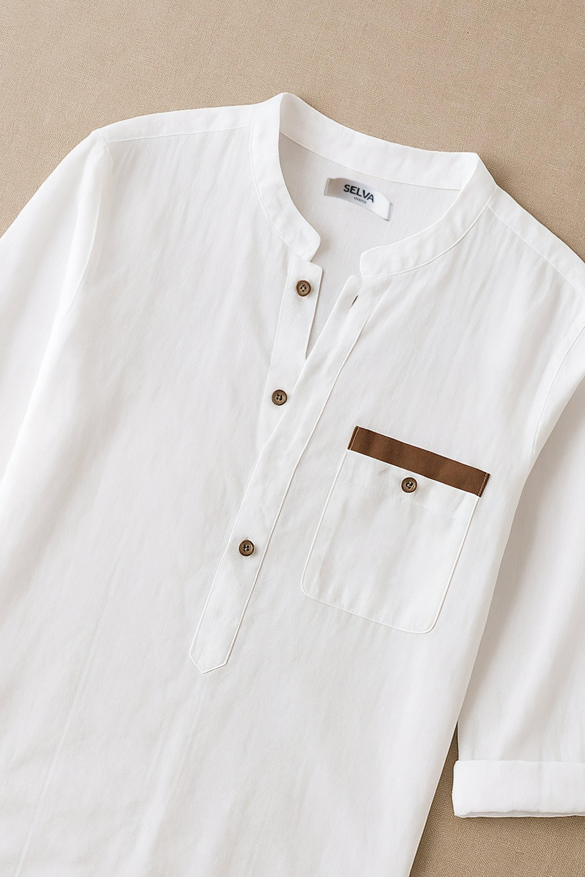 Minimalistyczna i wszechstronna – Enzo to dopracowana propozycja na dni, gdy liczy się zarówno wygoda, jak i elegancja. Uszyta z myślą o nowoczesnym stylu, posiada stójkę i półplisę, które nadają jej świeży, a zarazem klasyczny wygląd. Kieszeń na piersi z kontrastową lamówką dodaje subtelnego akcentu. Niezależnie od tego, czy nosisz ją samodzielnie, czy warstwowo – Enzo w śnieżnobiałym kolorze pasuje do każdej pory roku i okazji.