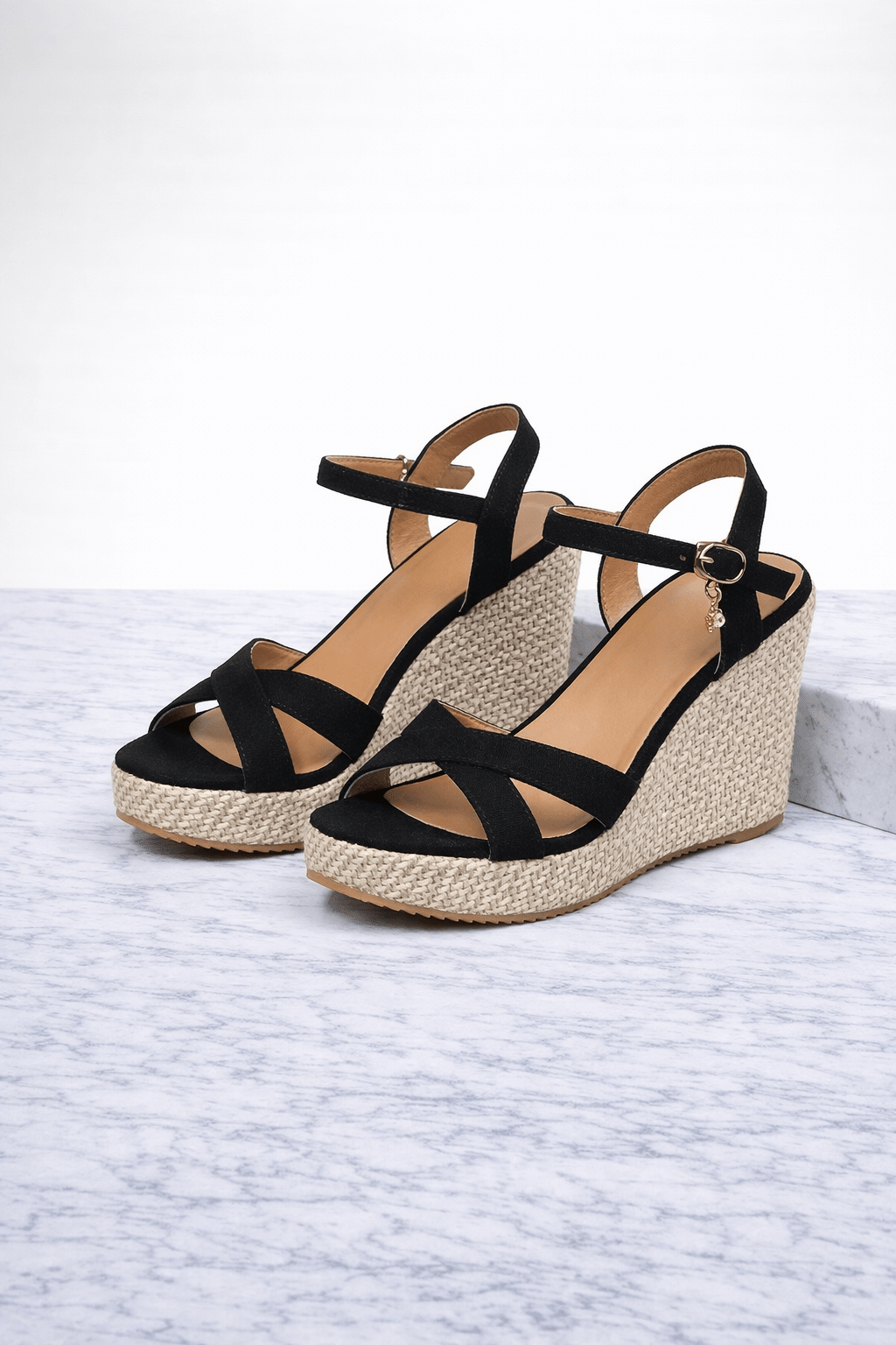 Sandały na Koturnie z Plecioną Podeszwą na Wiosnę łączą kobiecą elegancję z komfortem chodzenia. Delikatne paski stabilizują stopę, a pasek wokół kostki zapewnia pewne dopasowanie. Pleciony koturn dodaje wysokości i wiosennego charakteru.