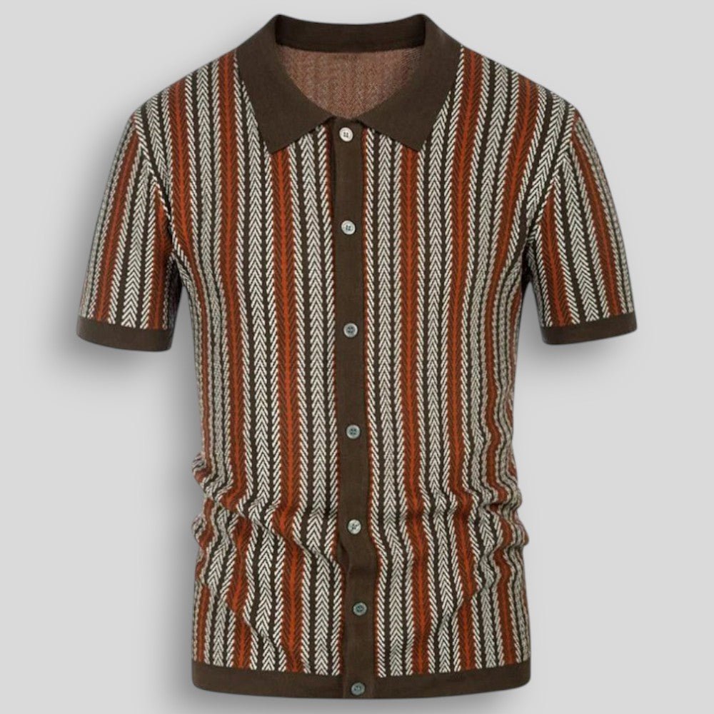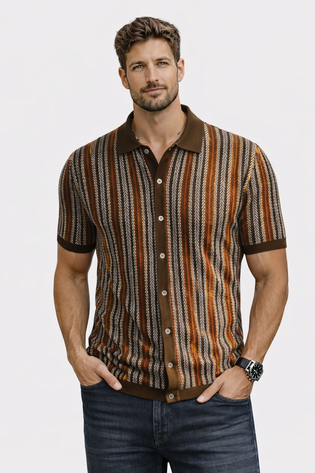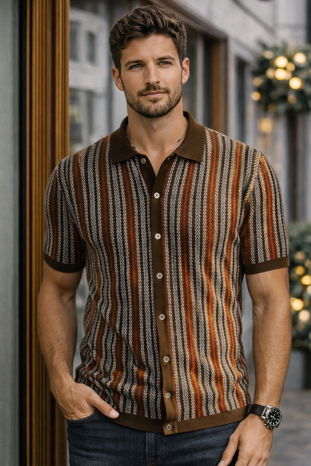 Wiosenna Męska Koszulka Retro z Guzikami i Wzorem w Jodełkę (Męska)