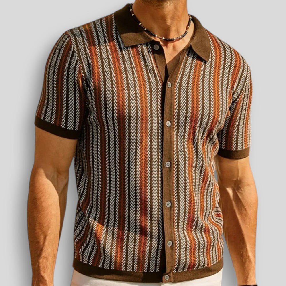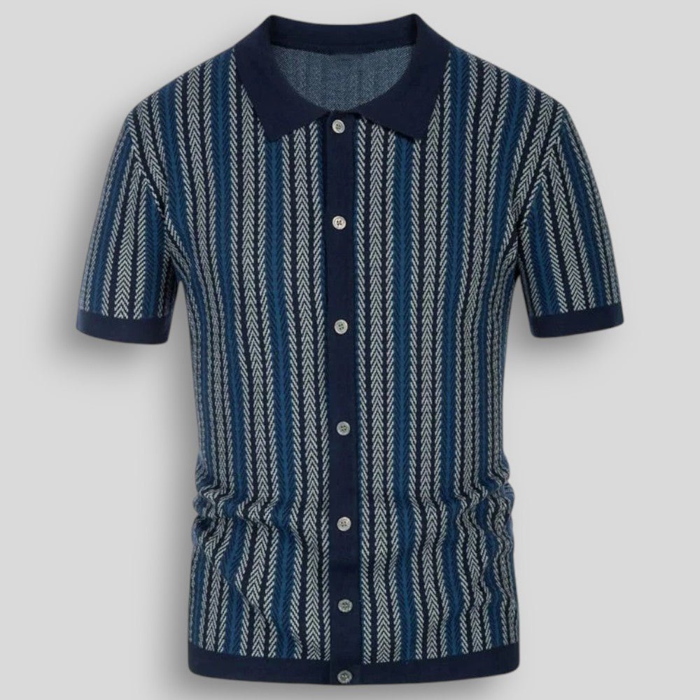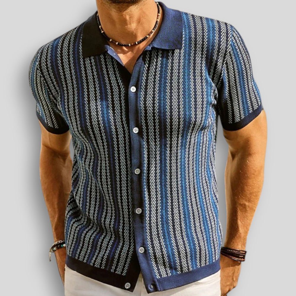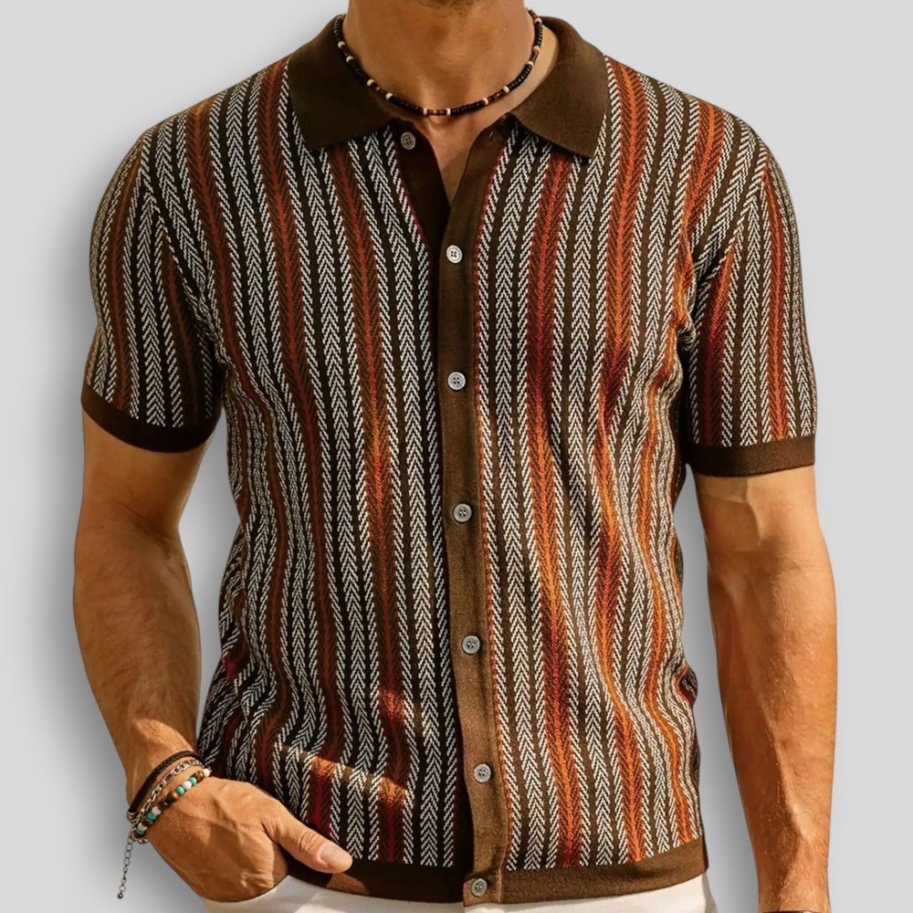 Wiosenna Męska Koszulka Retro z Guzikami i Wzorem w Jodełkę (Męska)