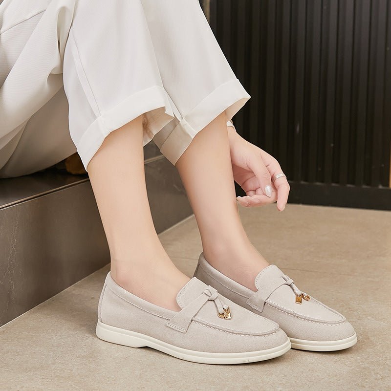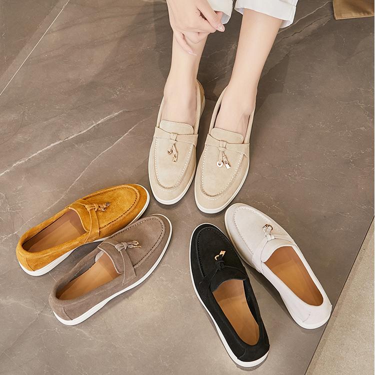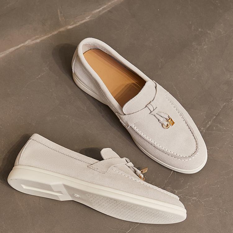 Wiosenne Damskie Mokasyny Skórzane Wsuwane z Ozdobą (Damskie)