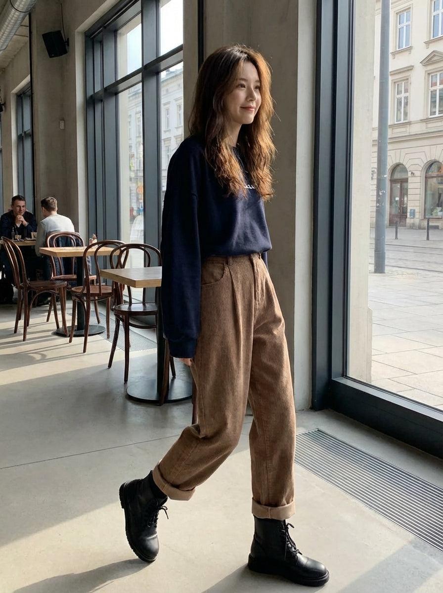 Wiosenne Szerokie Spodnie Sztruksowe w Stylu Vintage (Damskie)