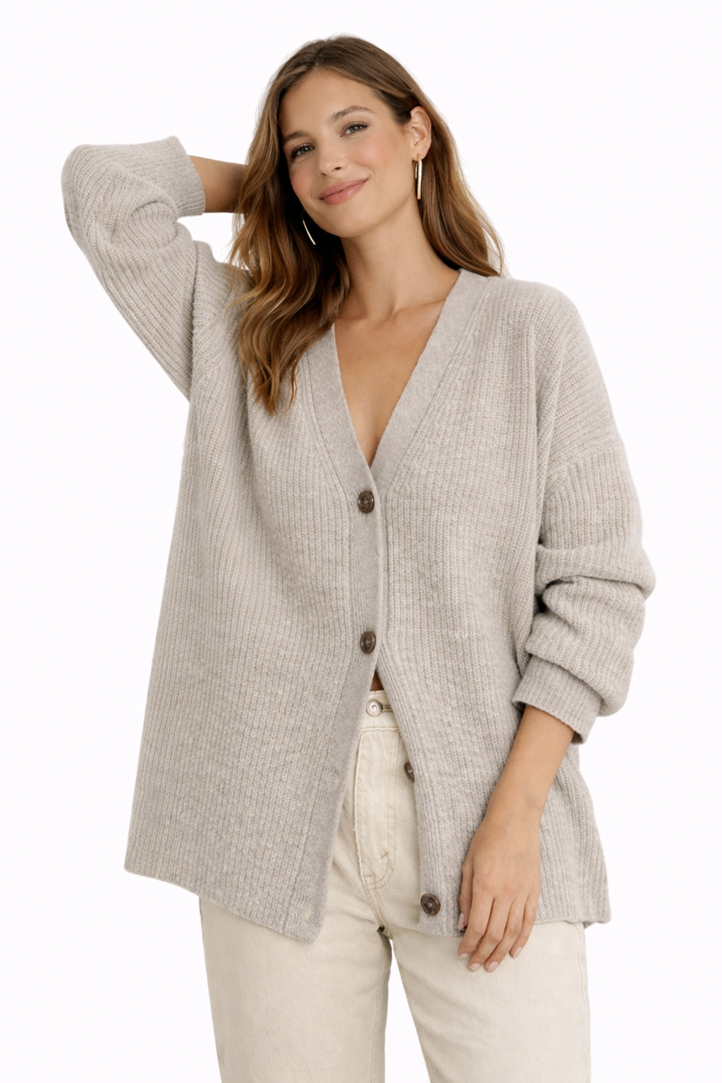 Wiosenny Kardigan Oversize na Guziki z Miękkiej Dzianiny (Damski)