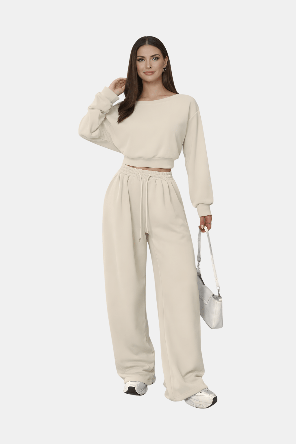 Zestaw z Odkrytymi Ramionami i Szerokimi Spodniami łączy lekki wiosenny styl z komfortem codziennego noszenia. Bluzka odkrywająca ramiona podkreśla szyję i dodaje lekkości, a szerokie spodnie zapewniają swobodę ruchu i modną sylwetkę — idealne na cieplejsze wiosenne dni.