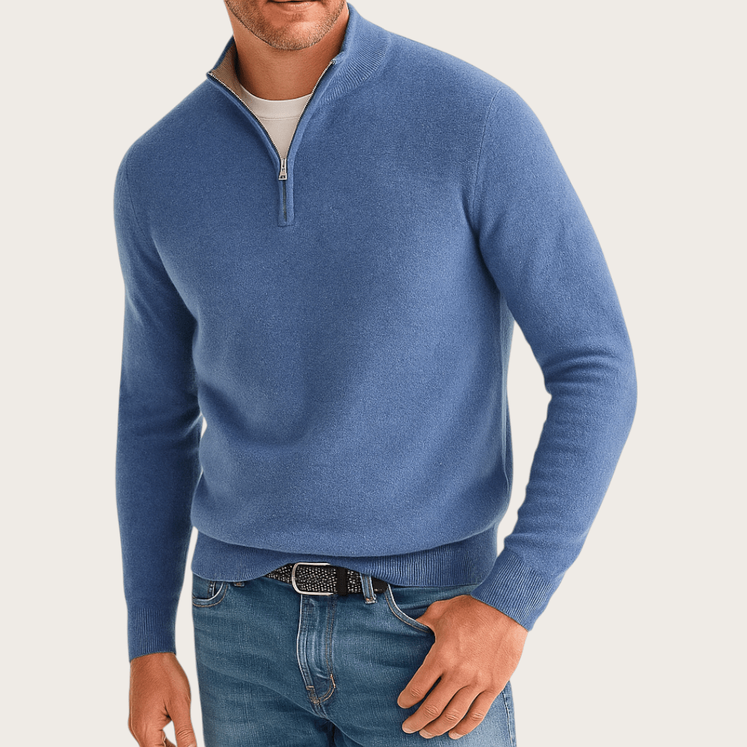 Zimowy Sweter z Półzamkiem łączy klasyczną dzianinę, stójkę i praktyczny zamek, zapewniając ciepło oraz elegancki wygląd na chłodniejsze dni. Idealny do codziennych stylizacji – wygodny, uniwersalny i stylowy.