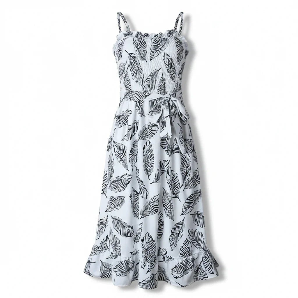 Damska Letnia Casual Wzorzysta Na Ramiączkach Z Wiązaniem Sukienka Midi