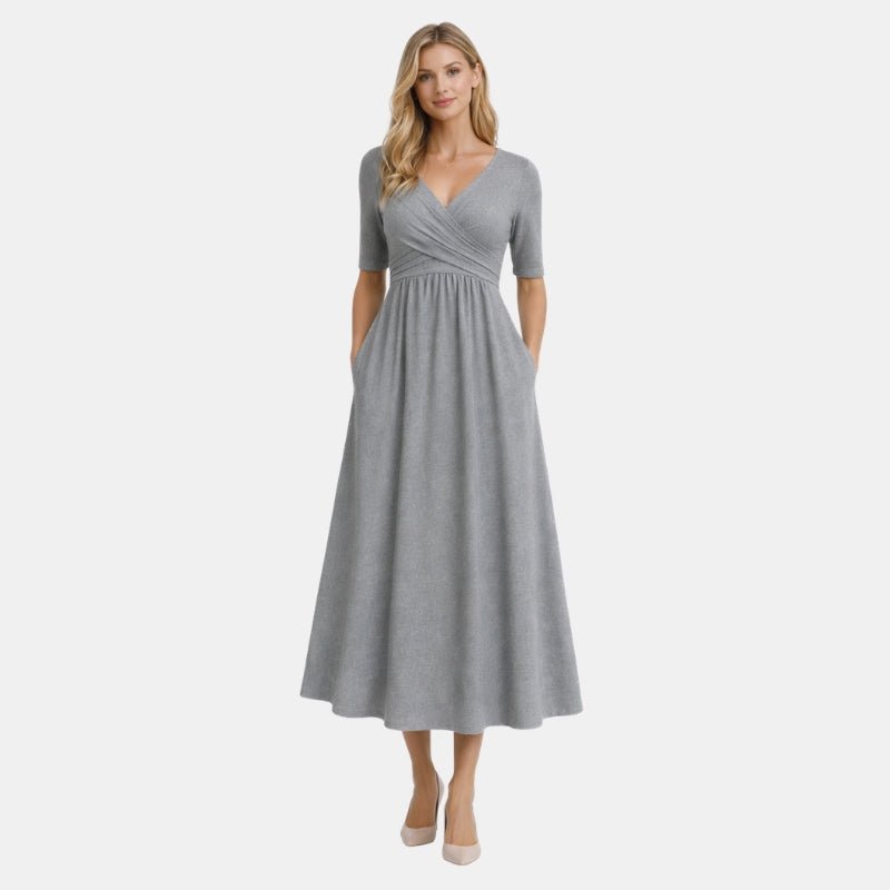 Damska Letnia Kopertowa Krótki Rękaw Casual Midi Sukienka