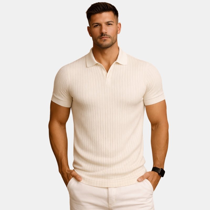 Męska Letnia Prążkowana Dopasowana Koszulka Polo