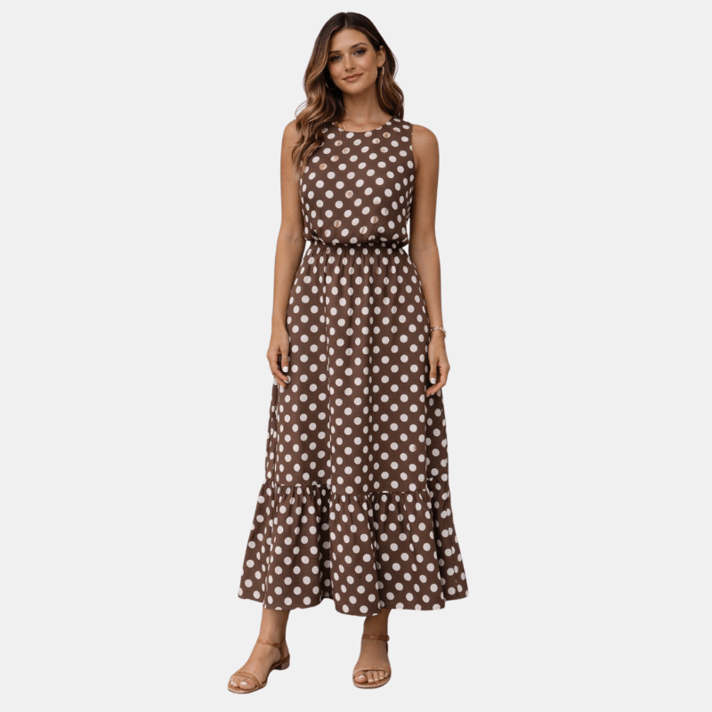 Damska Letnia Sukienka Midi w Groszki Bez Rękawów