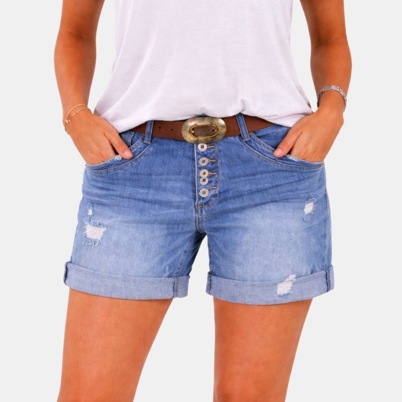 Damskie Letnie Jeansowe Guziki Przetarcia Szorty
