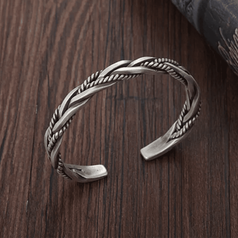 Męska Letnia Pleciona Srebrna Bransoletka Otwarta