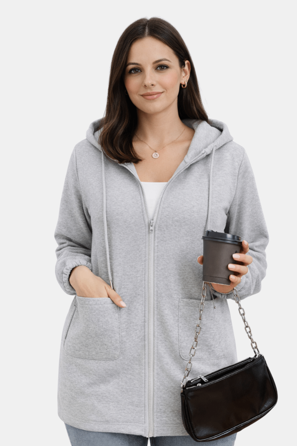 Dłuższa Bluza z Kapturem na Zamek (Damskie)