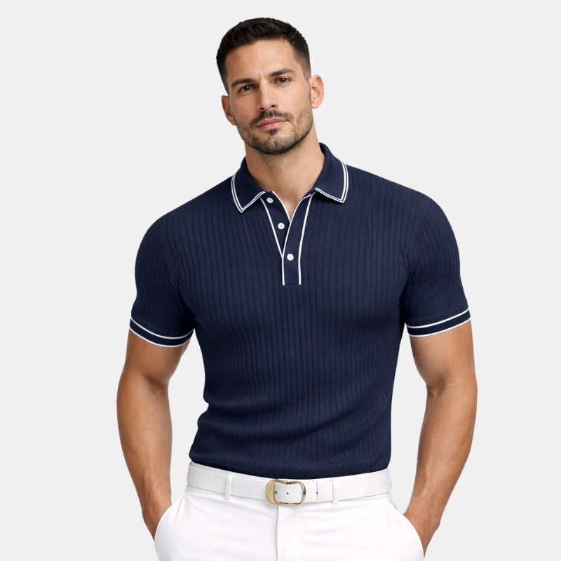 Męska Letnia Prążkowana Kontrastowy Kołnierz Koszulka Polo