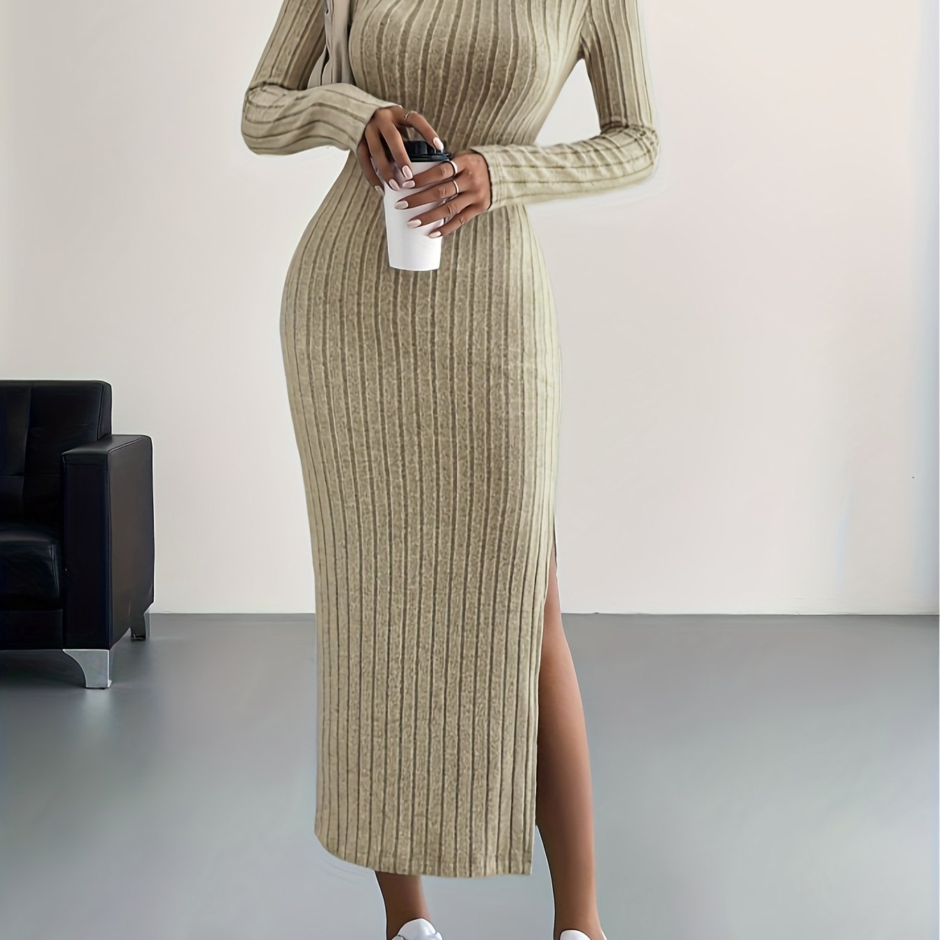 Prążkowana Sukienka Maxi z Długim Rękawem na Wiosnę (Damska)