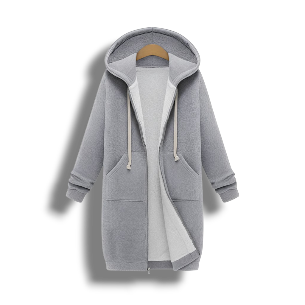 Przytulna Długa Kurtka Zimowa z Kapturem i Kieszeniami (Damska)