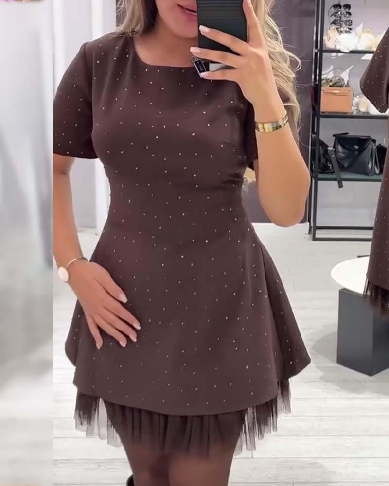 Sukienka Codzienna Patchwork z Delikatną Siatką (Damska)