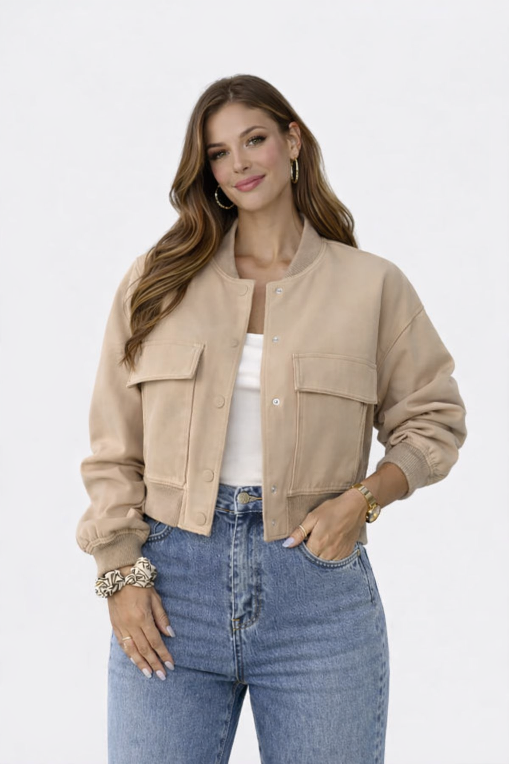 Wiosenna Krótka Kurtka Bomberka z Kieszeniami Cargo (Damska)