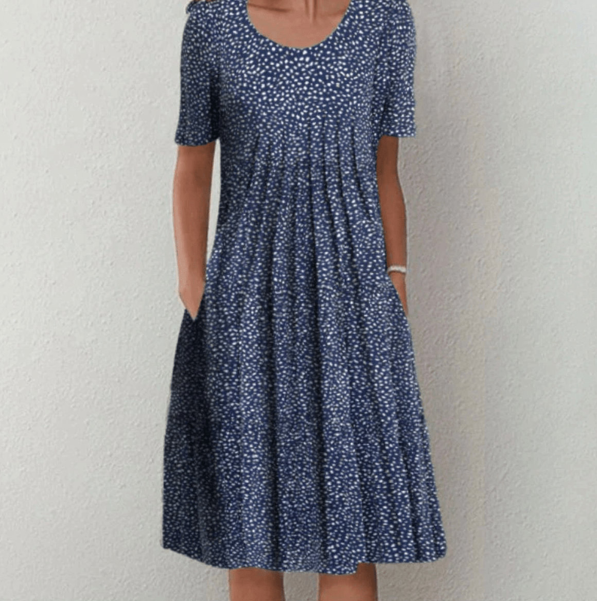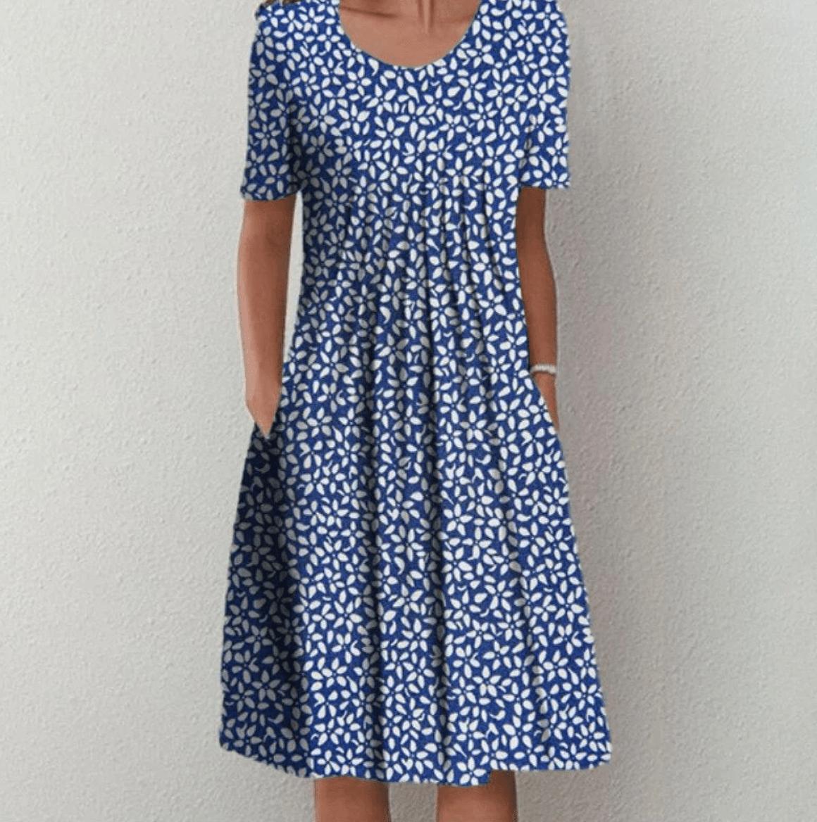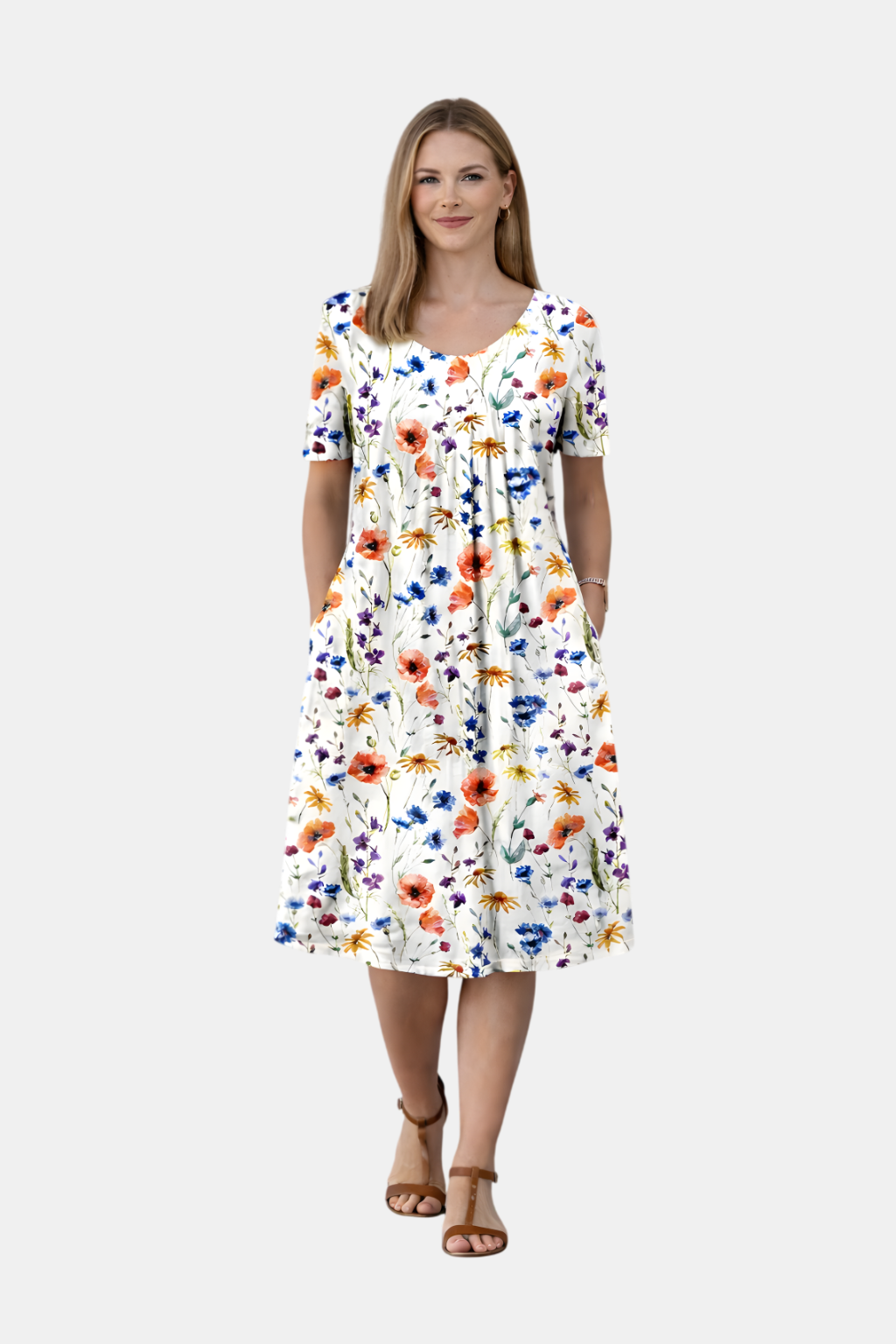 Wiosenna Sukienka Midi we Wzór z Krótkim Rękawem (Damska)