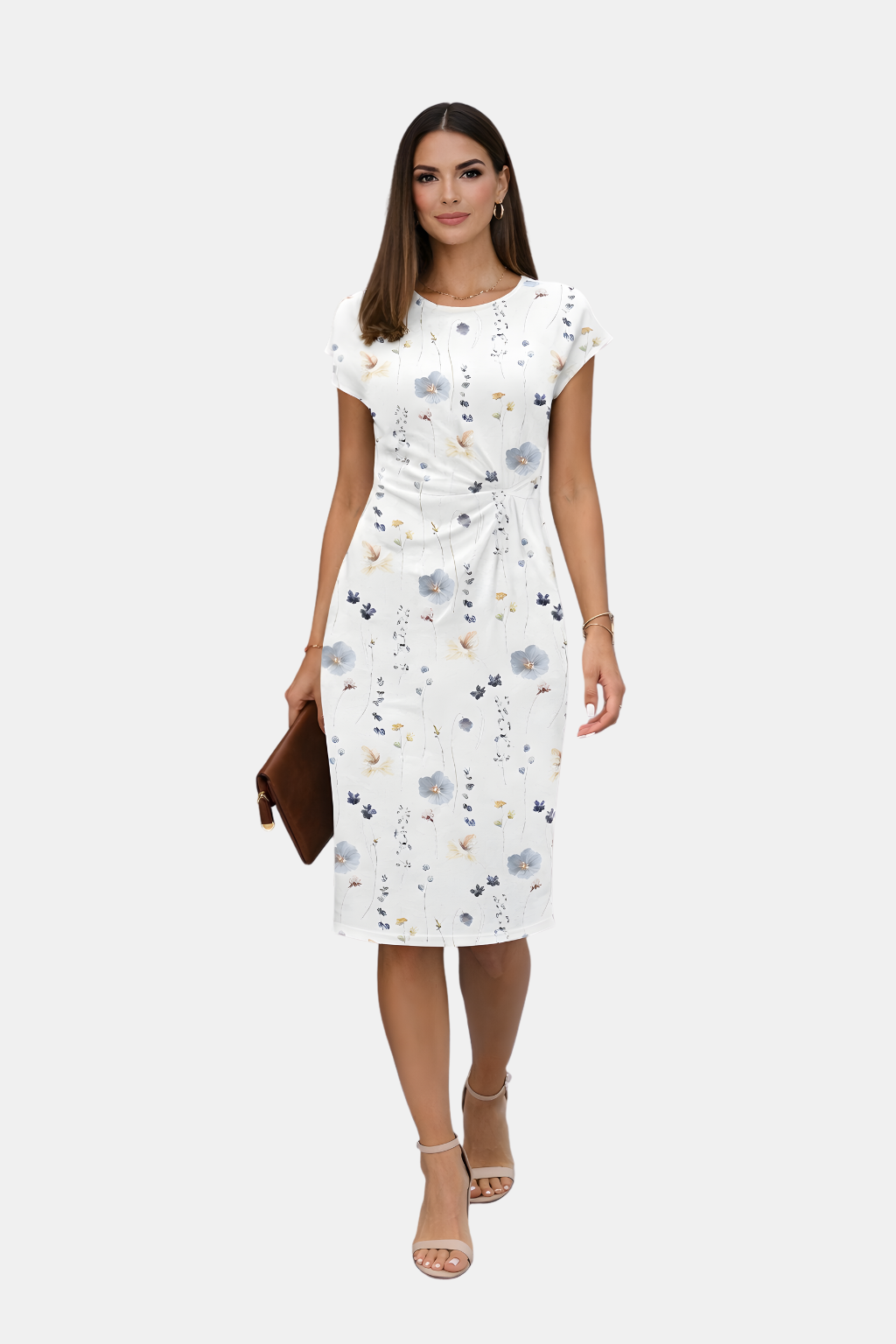 Wiosenna Sukienka Midi z Krótkim Rękawem (Damska)