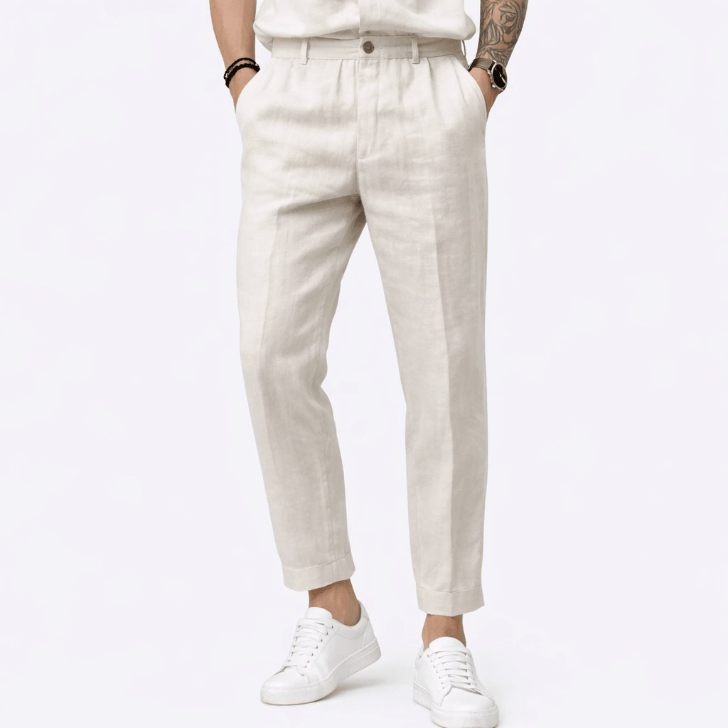 Wiosenne Lniane Spodnie Casual zostały stworzone z myślą o cieplejszych wiosennych dniach, łącząc naturalną przewiewność, lekkość materiału i komfort noszenia. Wykonane z czystego lnu, zapewniają świeżość przez cały dzień, a delikatnie zwężana nogawka nadaje im nowoczesny charakter.