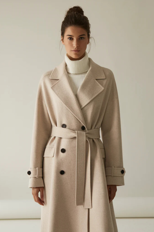Wzbogać swoją zimową garderobę o Zimowy Trencz z Wełny — połączenie elegancji, komfortu i ponadczasowego stylu. Wykonany z wysokogatunkowej mieszanki wełny, zapewnia ciepło i wygodę w chłodne dni. Model z paskiem w talii, klasycznymi klapami i dłuższym krojem to idealny wybór na zimę.