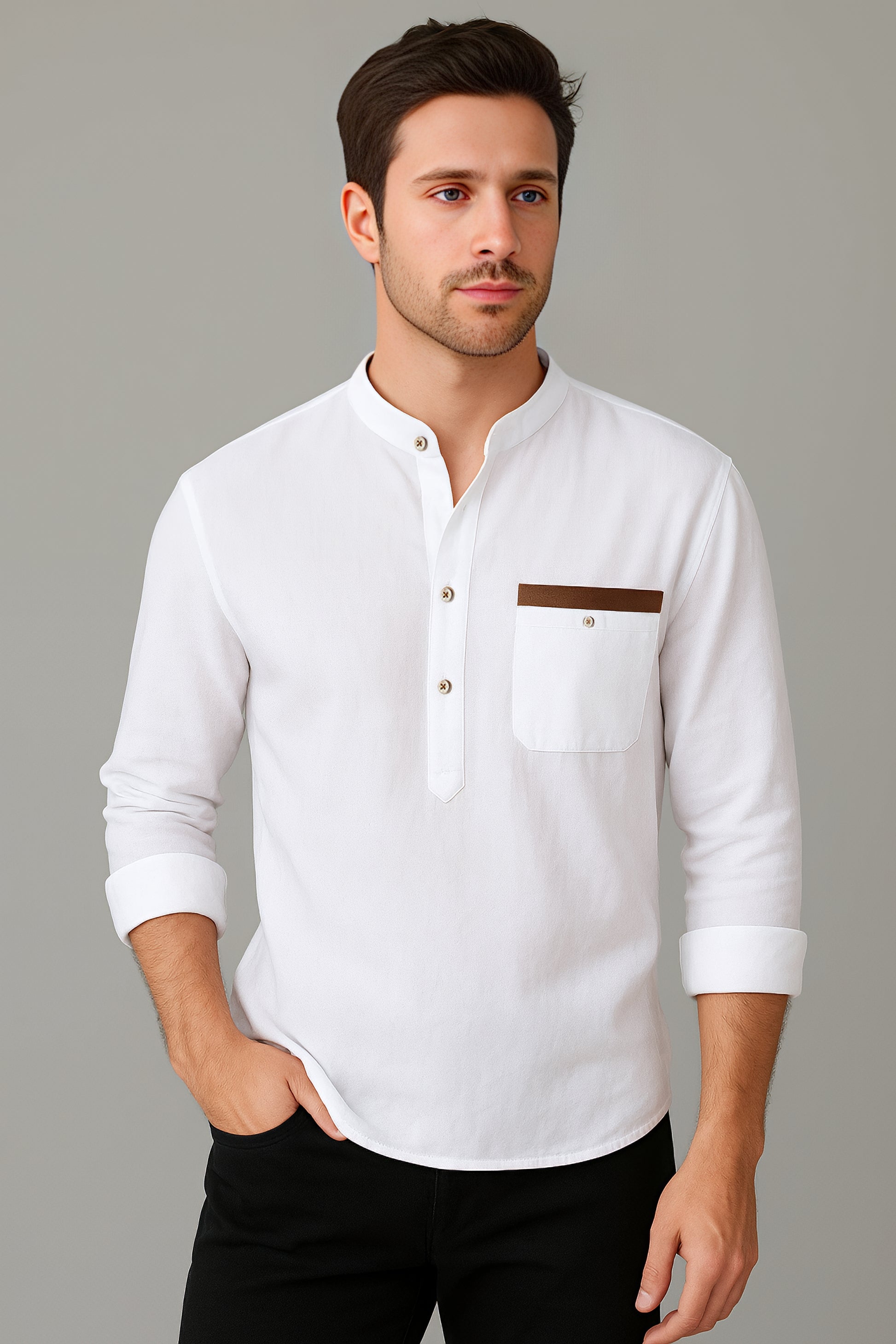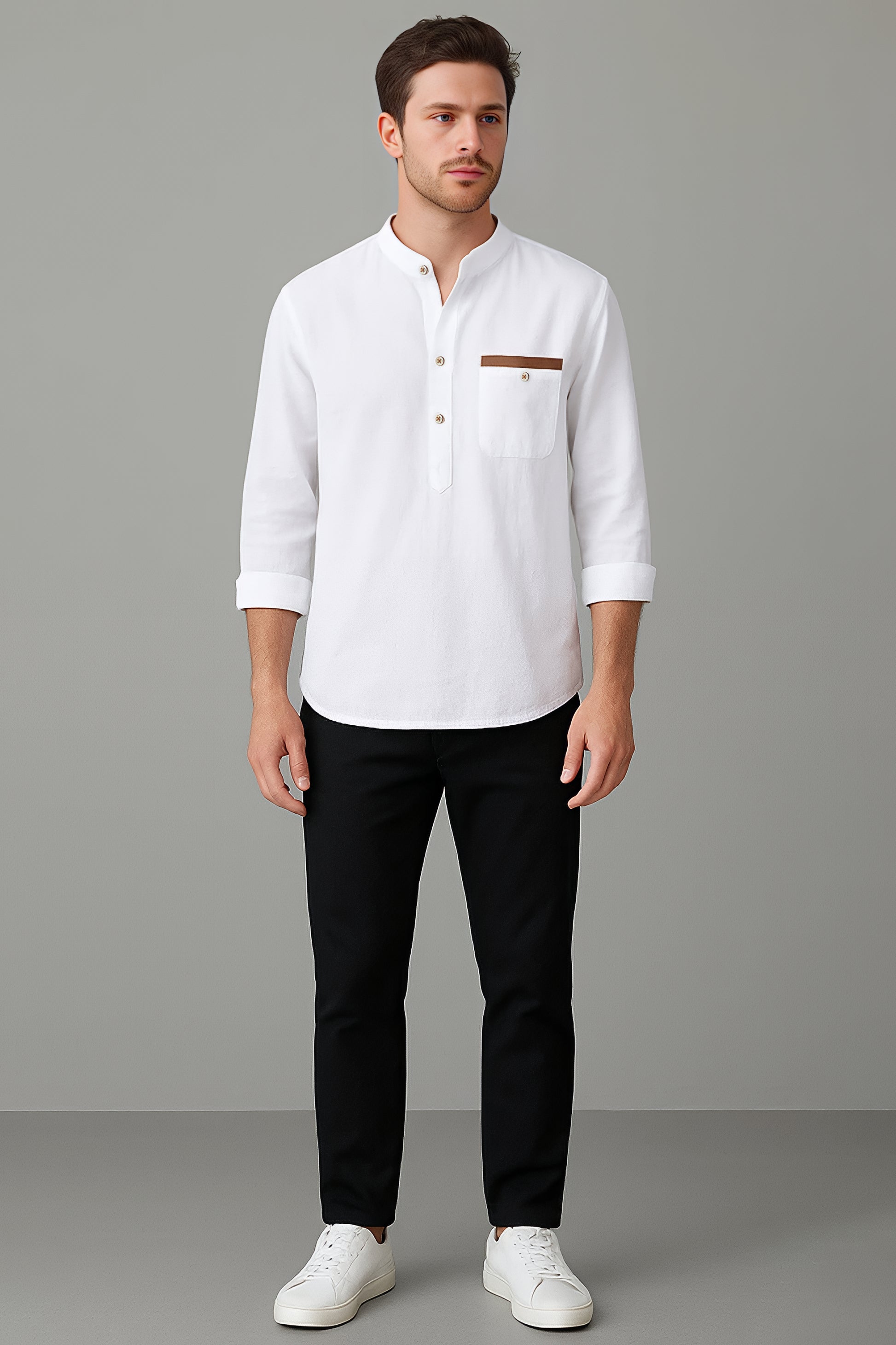Minimalistyczna i wszechstronna – Enzo to dopracowana propozycja na dni, gdy liczy się zarówno wygoda, jak i elegancja. Uszyta z myślą o świeżym stylu, posiada stójkę i półplisę, które pojawiają się jej świeży, a klasyczny klasyczny wygląd. Kieszeń na piersi z kontrastową lamówką dodaje subtelnego akcentu. Aplikacja od tego, czy nosisz ją samodzielnie, czy warstwy – Enzo w śnieżnym kolorze dopasowanym do każdej pory roku i okazji.